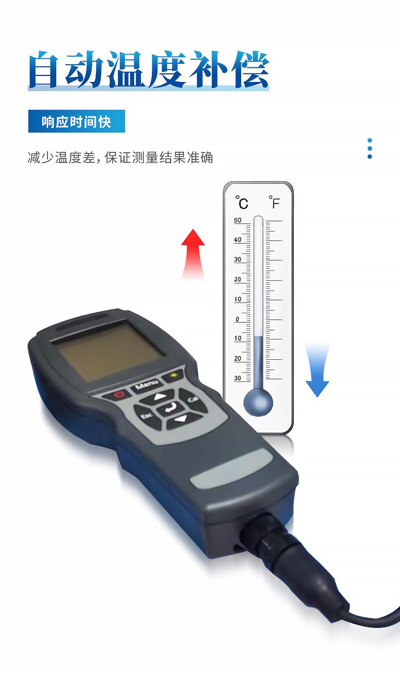 产品中包括的溶氧传感器采用了国际领先的荧光寿命技术,其基于物理学中特定物质对活性荧光的猝熄原理。这种荧光法测量溶解氧的显著优点在于测量过程中不耗氧因此无流速限制,同时无需预热不需电解液,免于维护和频繁校准,恒美光学溶解氧探头的响应时间更是低至30秒,让溶解氧测量更精准、更稳定、更迅速、更便捷。