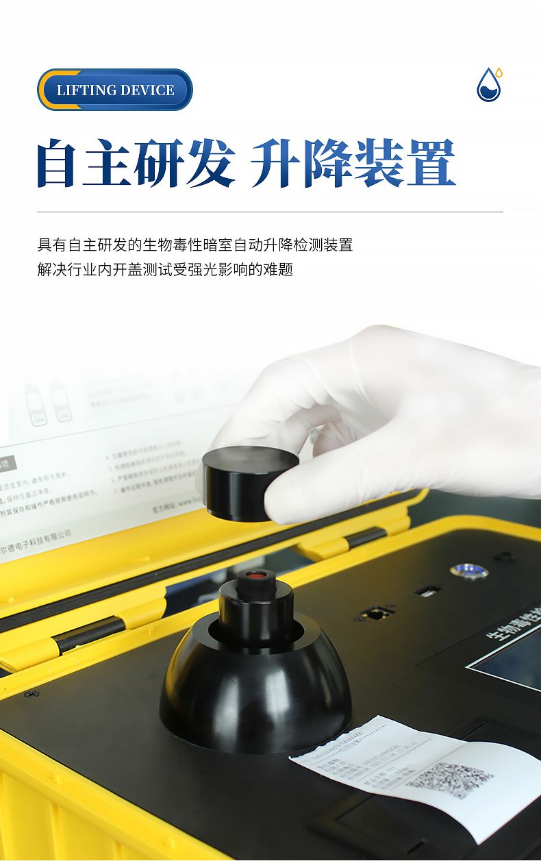 水质急性毒性仪器是用于实验室的新一代生物急性毒性分析仪,是一种基于生物荧光传感技术的毒性检测系统,根据发光细菌在新陈代谢时发光强度的变化进行定性和定量检测。与传统的鱼、蚤和其它水生生物作为生物检测方法相比,发光细菌法简便、快速、灵敏、适应性强、重复性好、精度高、费用低、用途广,针对环境污染、紧急事故、安检及常规检测等目的而设计的水质毒性快速检测仪器,可用于现场水中重金属、毒剂、神经毒剂、农药制剂等物质总体毒性检测。