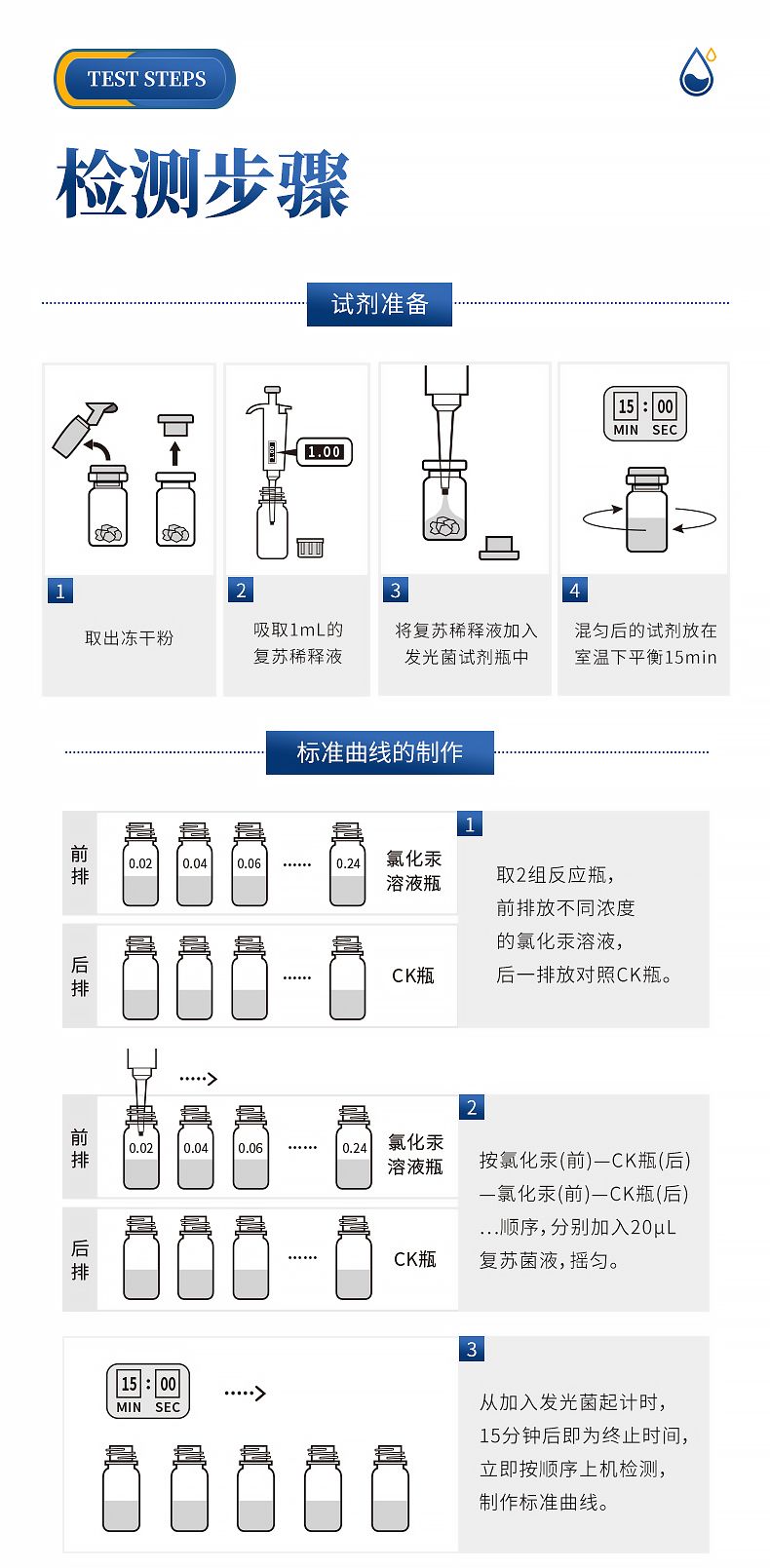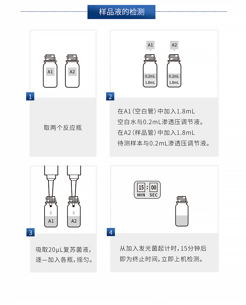 菌种:符合ISO11348&GB/T15441-1995标准规定的菌种,包括费氏弧菌、明亮发光杆菌T3小种