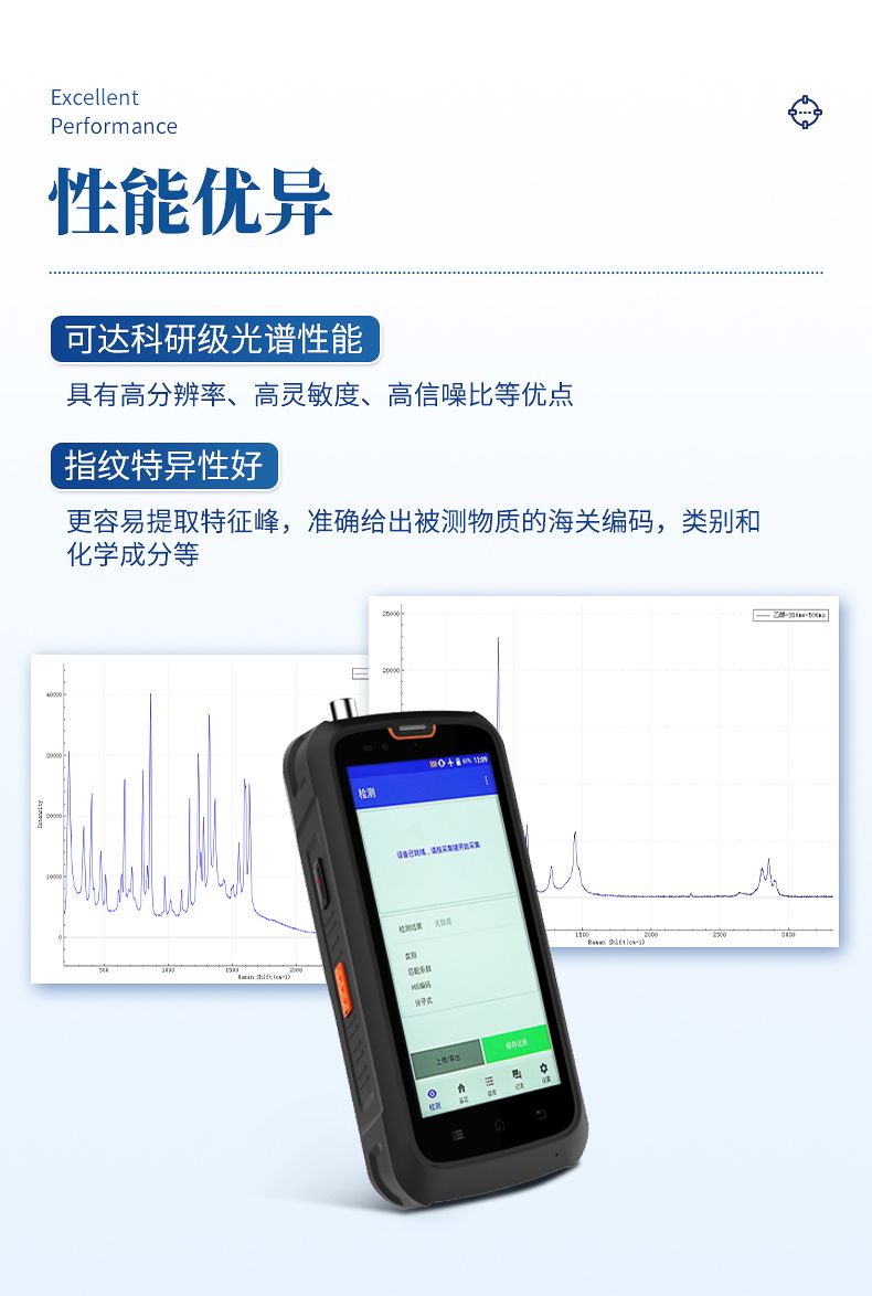 性能优异:可达科研级光谱性能,具有高分辨率、高灵敏度、高信噪比等优点;指纹特异性好,更容易提取特征峰,准确给出被测物质的海关编码,类别和化学成分等;