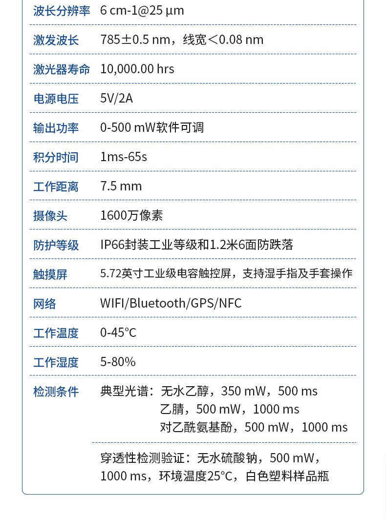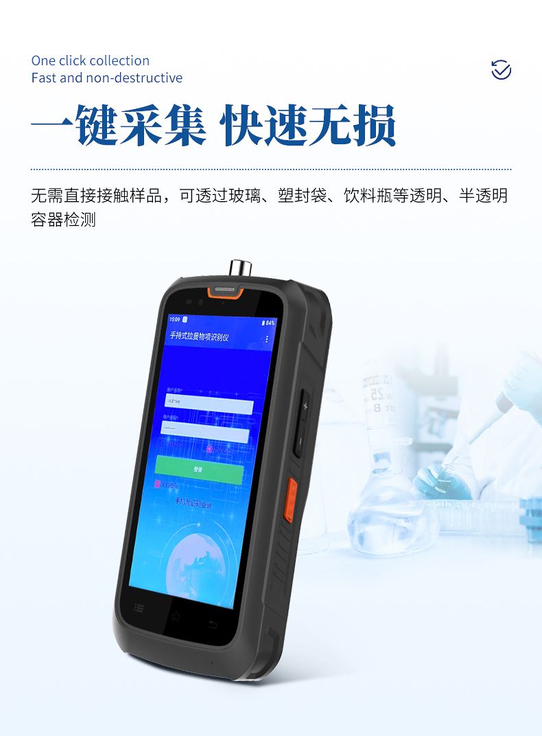 一键采集、快速无损检测:无需直接接触样品,可透过玻璃、塑封袋、饮料瓶等透明、半透明容器检测;