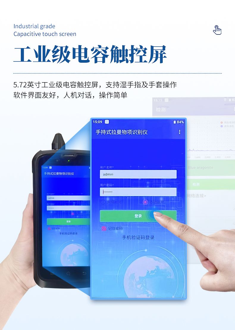 5.72寸工业级电容触控屏,支持湿手指及手套操作