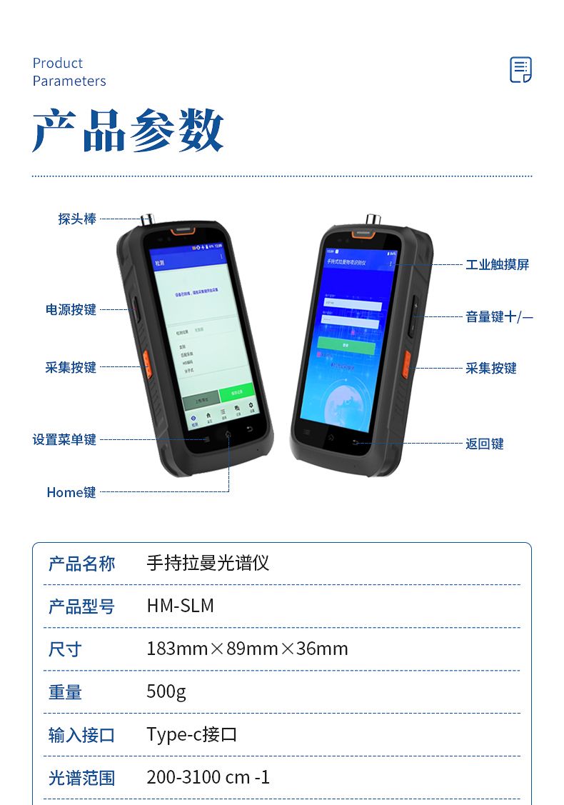 品牌:恒美 型号:HM-SLM 加工定制:否 光谱范围:200-3100 cm -1 光谱分辨率:6 cm-1@25 μm 输出功率:0-500 mW软件可调 波长范围:200-3100 cm -1 激光线宽:785±0.5 nm,线宽<0.08 nm 外形尺寸:183×89×36 mm mm 工作湿度:5-80% 工作温度:0-45℃ 触摸屏:5.72寸工业级电容触控屏,支持湿 摄像头:1600万像素 工作距离:7.5 mm 手持式拉曼光谱仪采用高性能科研级别拉曼系统,将光谱仪功能精简化。基于手机,它可以实现云-网-端的物联网拉曼监测和信息检索。新一代的手持拉曼光谱仪具备超高的高灵敏度及高光学分辨率等特点,被广泛应用于医药、医疗、公共安全、化学品检测、食品安全、珠宝检测等多个领域和行业。