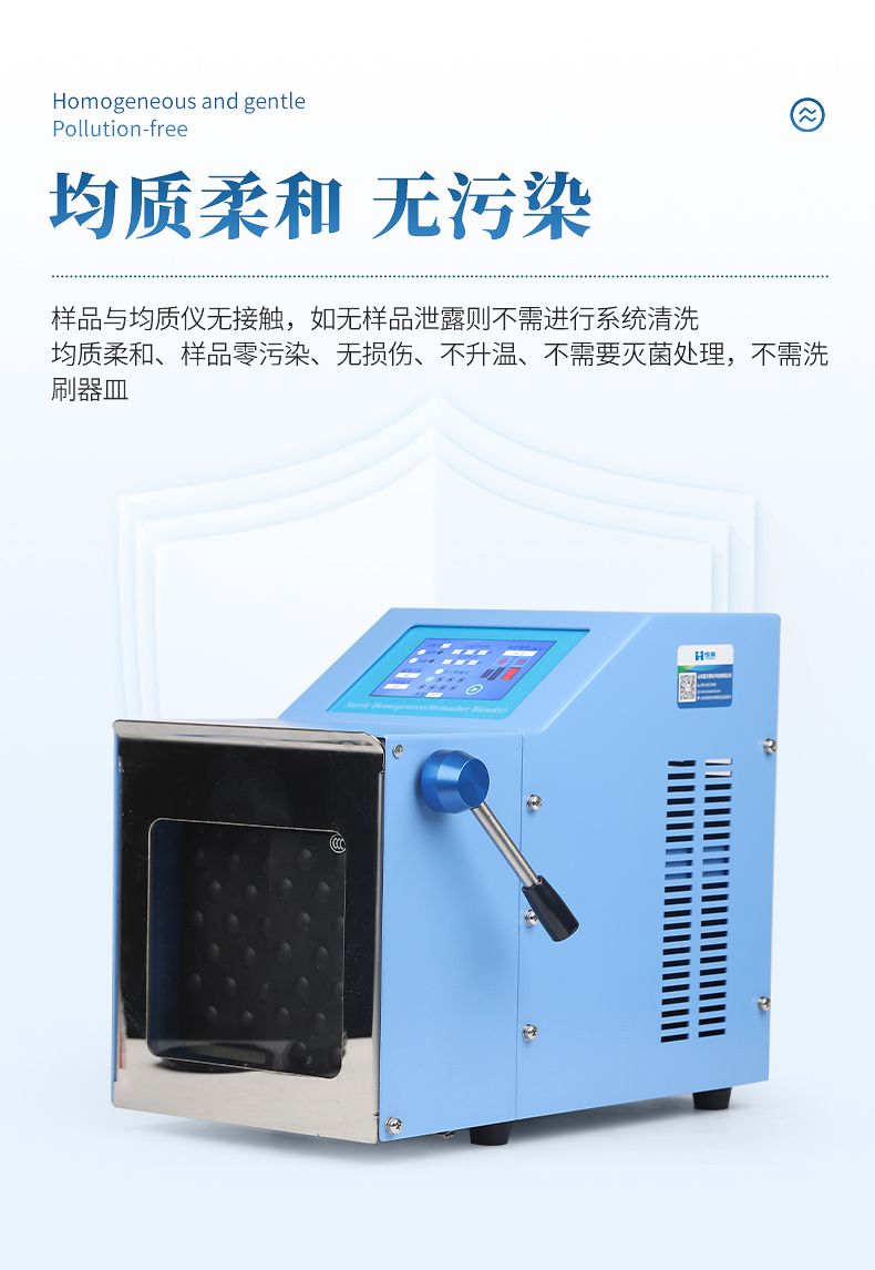●均质柔和、样品零污染、无损伤、不升温、不需要灭菌处理,不需洗刷器皿。