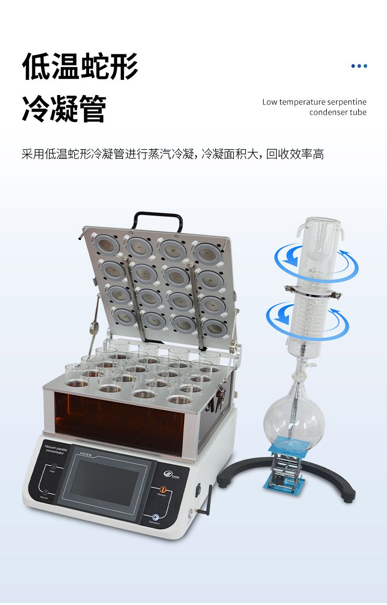 采用低温蛇形冷凝管进行蒸汽冷凝,冷凝面积大,回收效率高。