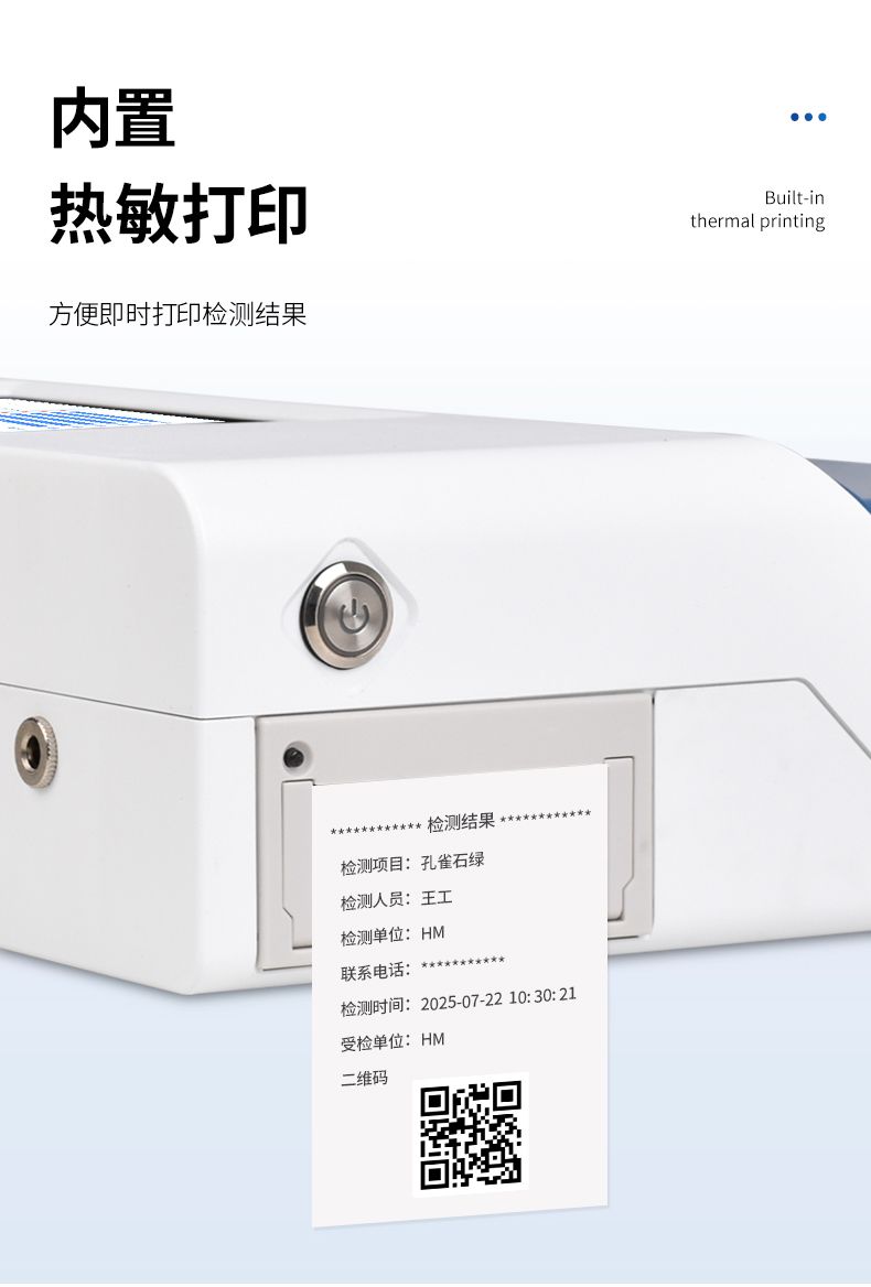 4、内置热敏打印机,检测完成即可现场打印标准报告,提升工作效率。
