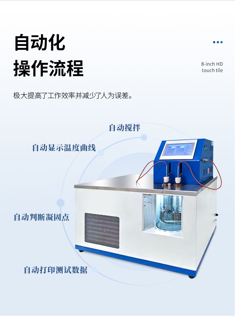 2、仪器自动搅拌,自动判断凝固点、自动打印测试数据。
