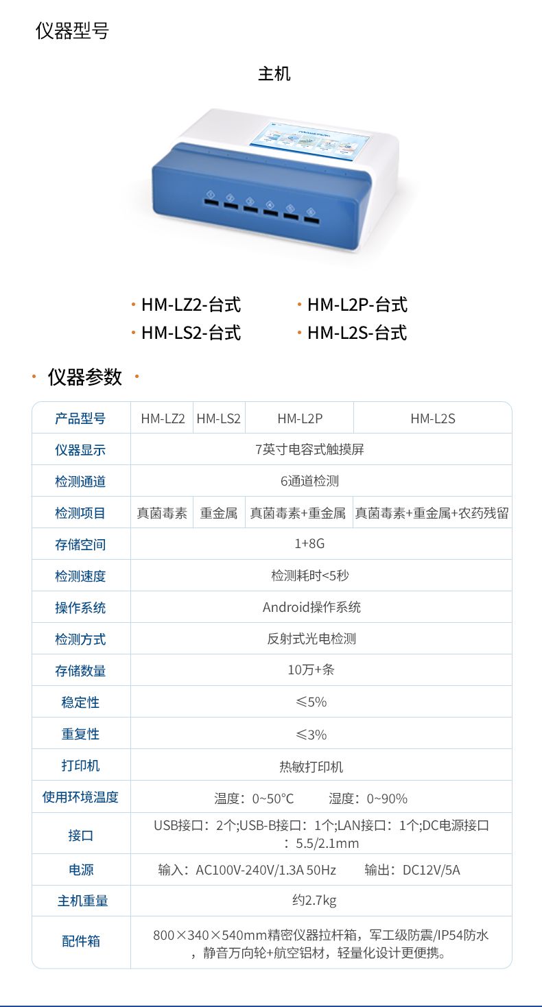 - 恒美粮食安全综合检测仪谷物重金属呕吐毒素定量分析真菌毒素快检仪HM-L2S