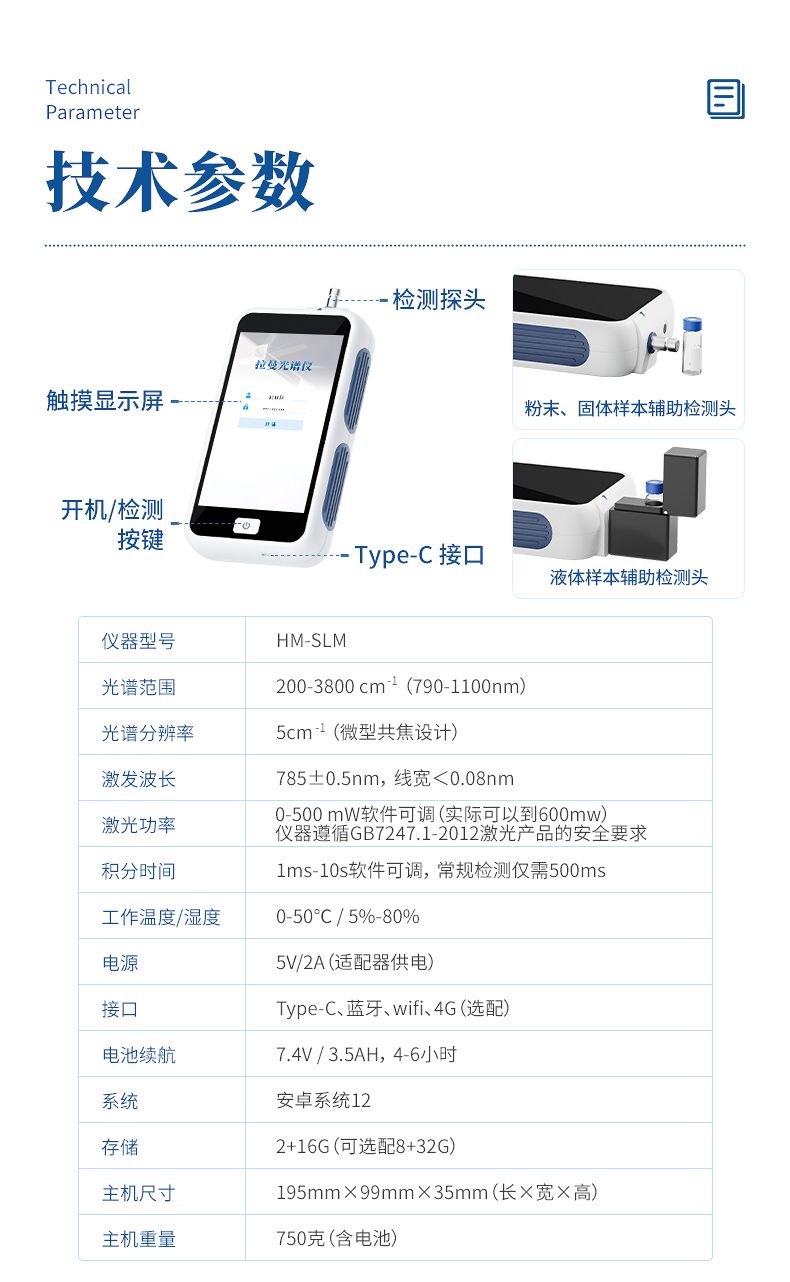 手持式拉曼光谱仪是一种便携式微型共焦拉曼光谱检测设备,基于拉曼散射原理,通过激光激发样品分子振动/转动能级跃迁,获取特征光谱信息,快速识别物质成分,专为快速、无损、高灵敏度的物质分析设计。适用于现场快速检测,广泛应用于公安缉毒、食品安全、制药原辅料鉴定、珠宝检测及工业材料分析等领域。